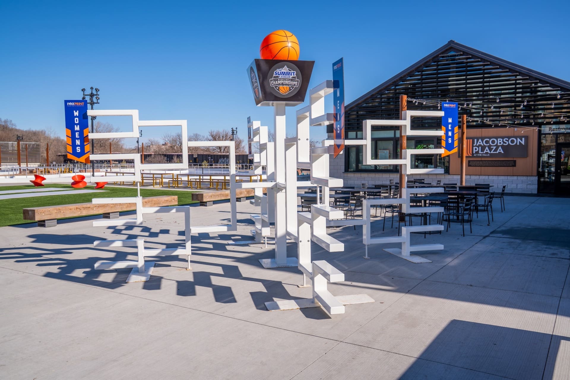 Jacobson Plaza at Falls Park West will serve as “Summit League Central” this year, offering photo backdrops, a life-size tournament bracket and the chance to try out curling activities.