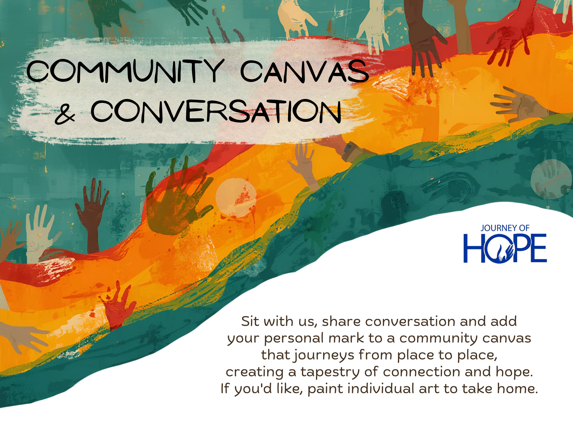 Be a part of creating a traveling community canvas. No registration required, no cost, no age limit. Stay for the entire hour or only a short time. Supplies provided.