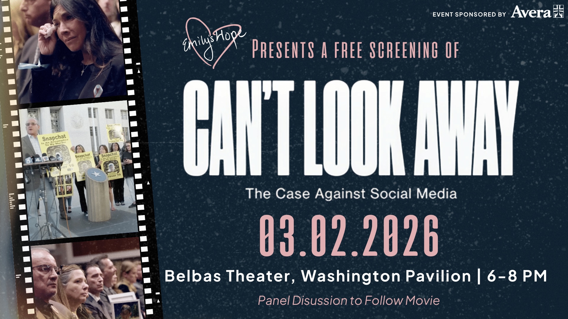 Emily’s Hope invites the community to the Belbas Theater at the Washington Pavilion for a special screening of “Can’t Look Away,” followed by a live panel discussion on youth safety in the digital age.