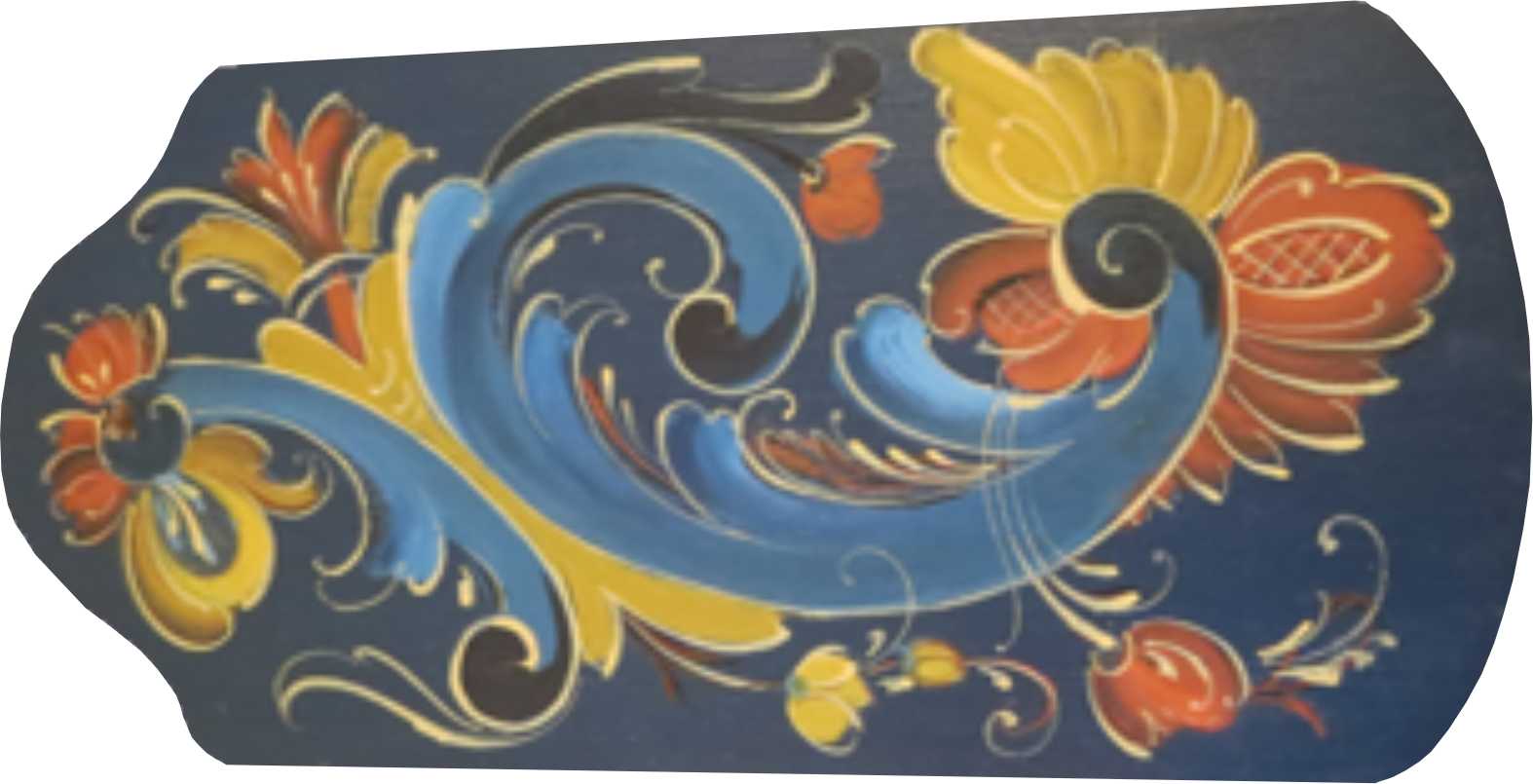 Throughout the upper-Midwest, Norwegian immigrants brought this style of painting with them as a decoration on trunks and household items. The colors are bold, designs elaborate, and items became true works of art.
