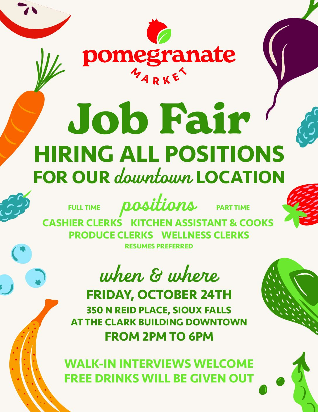Join us at Pomegranate's newest location Downtown on Friday, October 24th 2-6pm We'll be hosting a Job Fair for All Positions! Friday, October 24th. 2-6pm 350 N Reid Place, Sioux […]