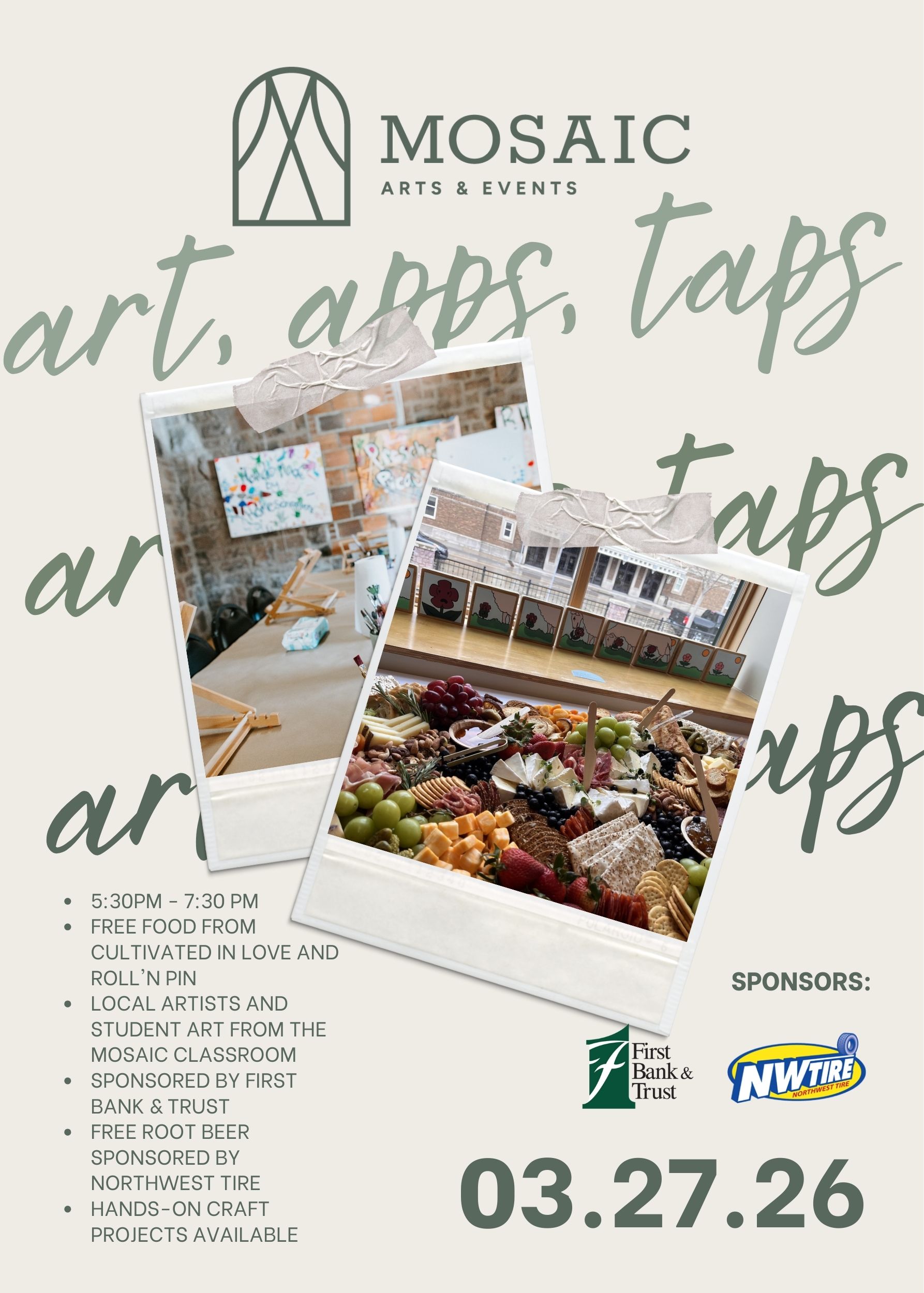 Join us at Mosaic Arts & Events for our annual art show! We will be featuring art from local artists and Mosaic Art Classroom students! We will also have soft […]